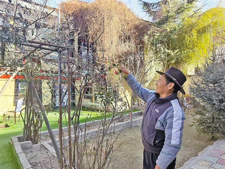 拉薩市城關(guān)區(qū)慈覺(jué)林村村民次頓珠在清理院子里的月季樹(shù)枝。 記者 文鳳 攝