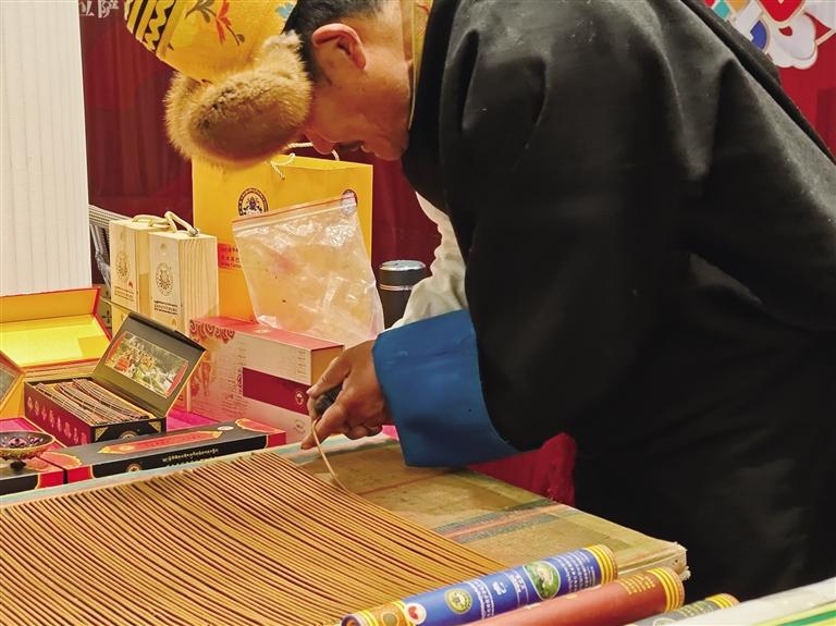 展銷活動(dòng)現(xiàn)場,一股淡雅香氣彌漫開來,藏香展位上,線香靜靜燃燒。拉薩市級非物質(zhì)文化遺產(chǎn)代表性傳承人加措正在制作藏香,吸引不少人駐足觀看。市民鄭先生說:“以前只見過藏香成品,第一次看制作過程,很驚喜。春節(jié)申遺成功后,非遺受關(guān)注更多,希望西藏非遺好物能被更多人了解!”