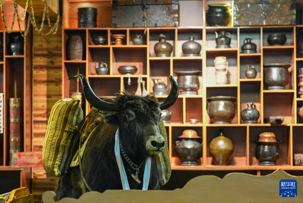 茶館主人珠珠將藏式茶館與民俗陳列方式相結(jié)合,讓顧客在品嘗美食的同時,沉浸式體驗民俗文化。茶館四周和過道上擺滿700余種3000多件西藏民俗物件,有給牛犢喂奶的牛角奶瓶、火柴盒大小的便攜酥油盒、防沙塵和雪盲的牦牛毛墨鏡等。牧民生產(chǎn)生活用具幾乎都能在這里找到,獨(dú)具風(fēng)格的茶館儼然成為一座藏北游牧文化“博物館”。??