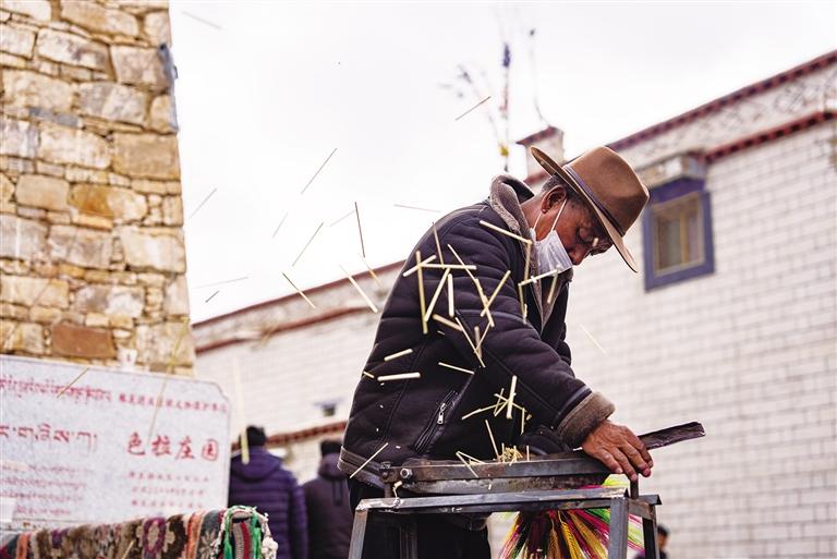 “一個人一天可以制作300到400捆‘羅薩梅朵’,批發(fā)價2元一捆,零售價5元一捆。每年賣完‘羅薩梅朵’后,我們就開始置辦年貨了?!?1歲的央金家共有5口人,“羅薩梅朵”是她家的主要收入來源。每天早晨7點(diǎn),她家的燈光就已亮起。央金留在家中制作“羅薩梅朵”,丈夫和女兒則前往拉薩市區(qū)售賣。