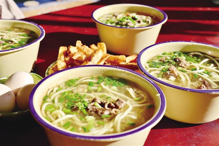 藏面、甜茶、炸土豆、肉餅……在西藏,無論大街小巷,總能看到大大小小的甜茶館。這里既是藏族群眾吃早餐的地方,也是下午閑暇時光與朋友相聚的場所。掀開甜茶館厚重的門簾,人們?nèi)齼蓛蓢谝黄?,桌上擺著熱氣騰騰的藏面和肉餅,空氣中彌漫著甜茶的奶香,搭配著低聲的談笑,構(gòu)成了一幅溫暖的畫面。