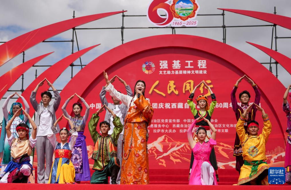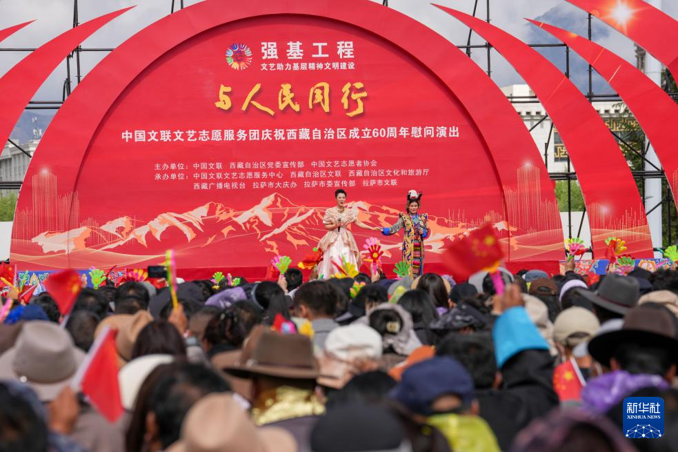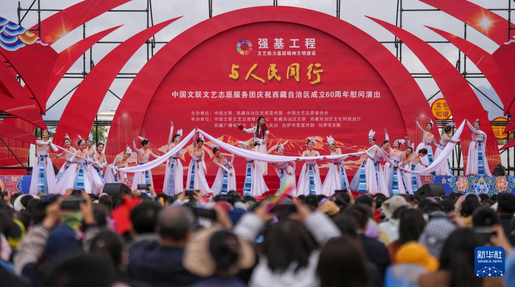 5月25日,由中國文聯(lián)、西藏自治區(qū)黨委宣傳部、中國文藝志愿者協(xié)會主辦的“與人民同行”中國文聯(lián)文藝志愿服務團慶祝西藏自治區(qū)成立60周年慰問演出在位于拉薩的西藏會展中心廣場舉行。 ??