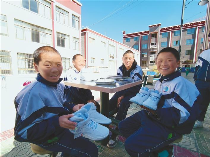 領(lǐng)到運動鞋的學(xué)生們開心不已。記者 扎西頓珠 攝