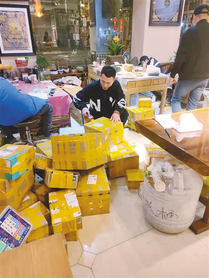谷斌親自為顧客打包特產(chǎn)并郵寄。