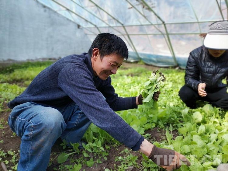 圖為西藏自治區(qū)昌都市察雅縣肯通鄉(xiāng)達(dá)如村村民洛丹正在打理溫室大棚 攝影:楊錫烽