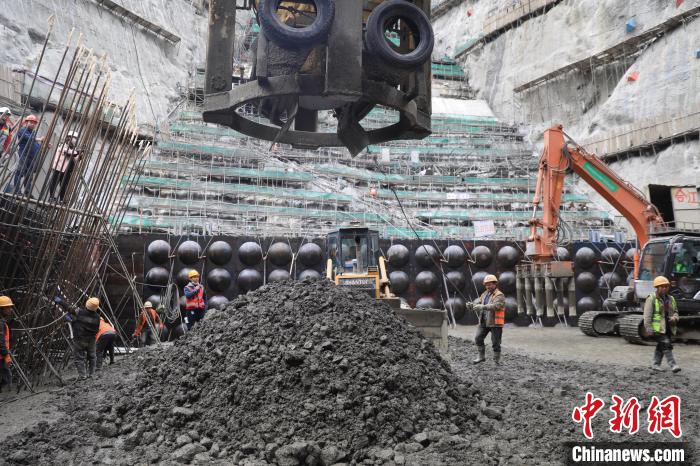 葉巴灘水電站大壩澆筑中。王磊 攝