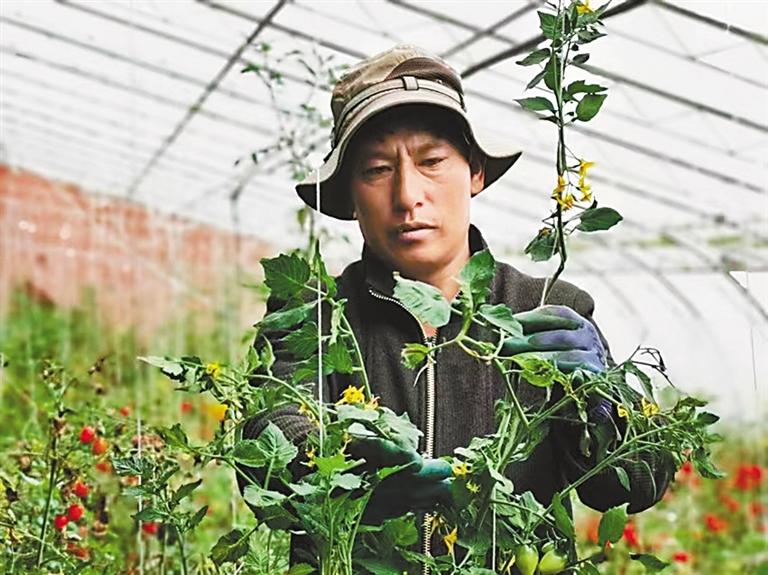 協(xié)雄鄉(xiāng)協(xié)麥村群眾在村農(nóng)業(yè)生態(tài)產(chǎn)業(yè)園打理蔬菜。記者 平措郎加 攝