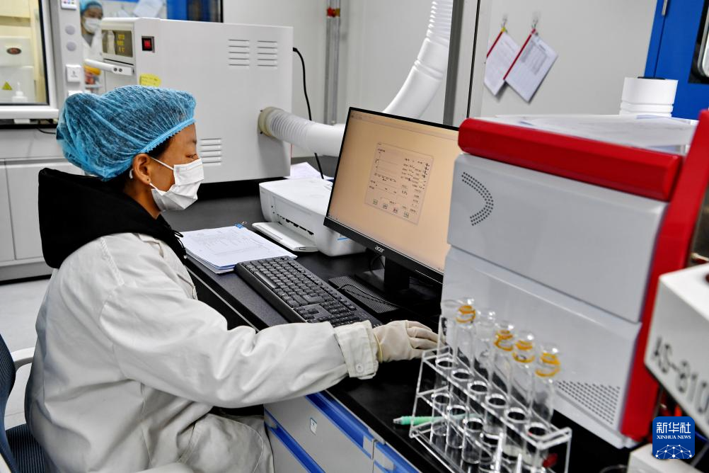 嘎確生態(tài)畜牧業(yè)發(fā)展有限責(zé)任公司檢驗(yàn)人員在對牛奶中的污染物進(jìn)行檢測(8月24日攝)。新華社記者 張汝鋒 攝