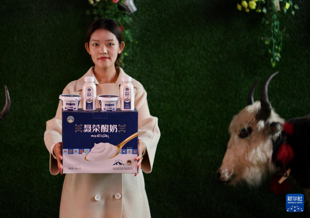 嘎確生態(tài)畜牧業(yè)發(fā)展有限責(zé)任公司的工作人員展示部分牛奶產(chǎn)品(8月24日攝)。新華社記者 張汝鋒 攝