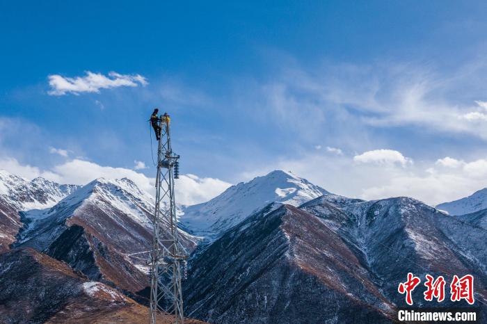 資料圖為2023年11月30日,西藏索縣一條35千伏線路工程施工人員正在開展塔上作業(yè)。趙清鵬 攝