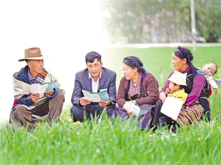 農(nóng)行西藏分行客戶經(jīng)理走進田間地頭宣講金融知識。