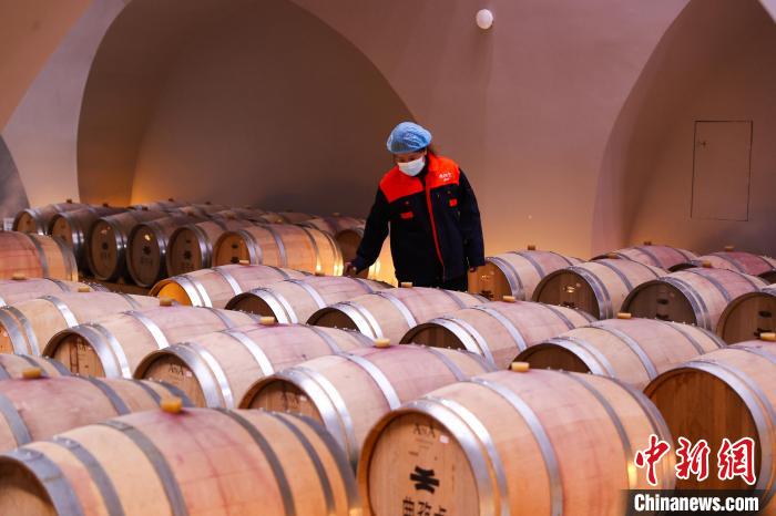 1近年來(lái),芒康縣將葡萄酒產(chǎn)業(yè)作為重點(diǎn)特色產(chǎn)業(yè),葡萄酒企業(yè)正如雨后春筍般涌現(xiàn),葡萄種植業(yè)已成為當(dāng)?shù)孛癖娫鍪罩赂坏闹匾緩?。圖為工作人員在橡木桶貯藏區(qū)檢查。中新社記者 薛蒂 攝