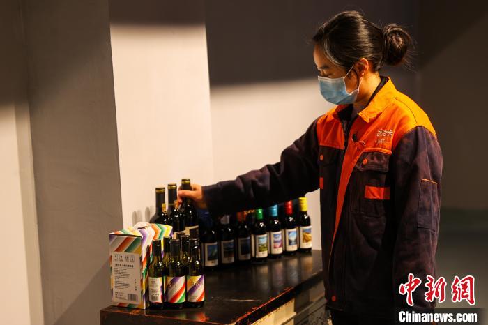 芒康縣在種植葡萄方面有著悠久的歷史,因干熱河谷氣候優(yōu)勢(shì)明顯,紫外線強(qiáng)、光線充足,適宜大面積栽種無(wú)公害綠色釀酒葡萄。圖為工作人員檢查瓶?jī)?chǔ)區(qū)葡萄酒狀態(tài)。中新社記者 薛蒂 攝
