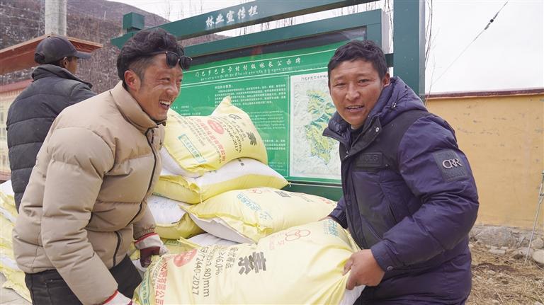 村民正在領取肥料。圖由益西曲珍提供