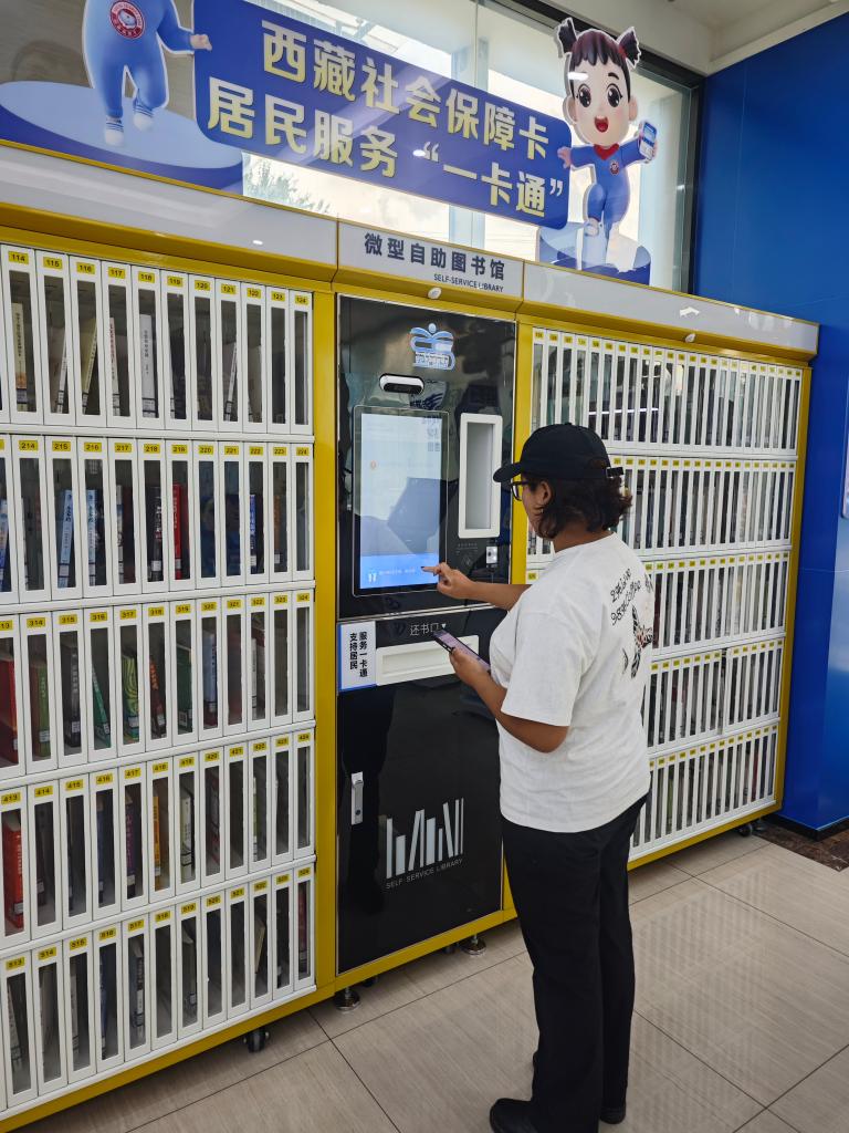 市民在中國建設(shè)銀行拉薩城西支行使用社保卡借閱圖書。(受訪者供圖)