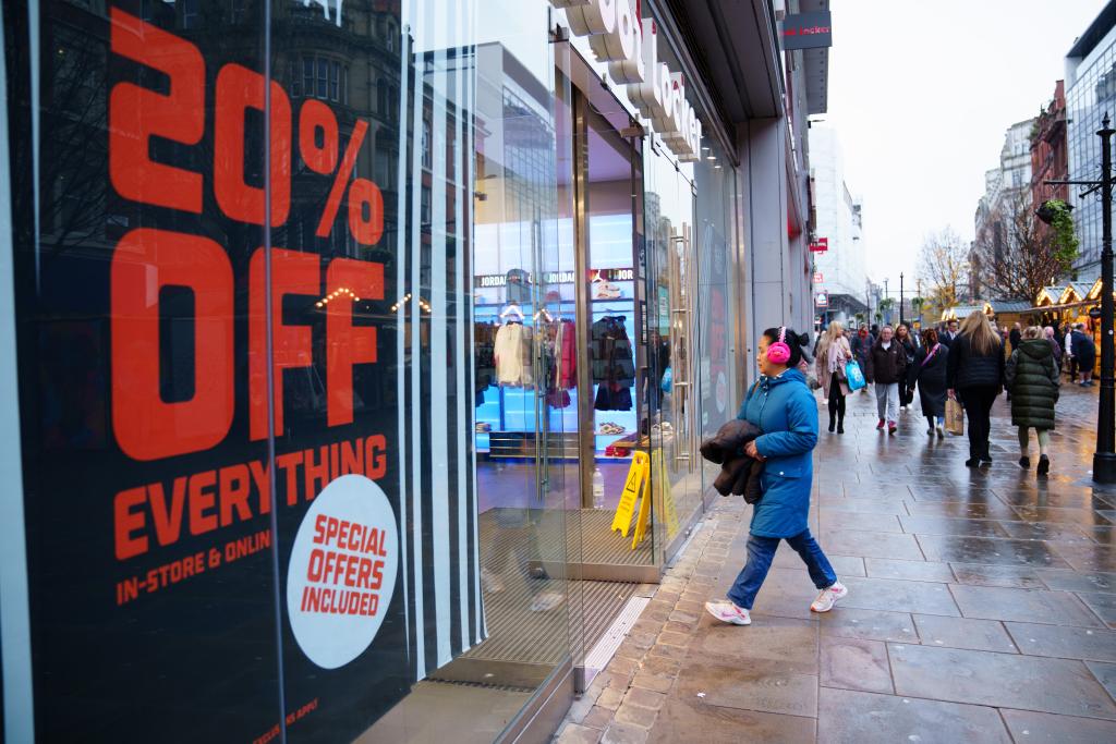 2023年11月22日,一名女子走進(jìn)英國曼徹斯特一家打折店鋪。新華社發(fā)(喬恩·休珀攝)