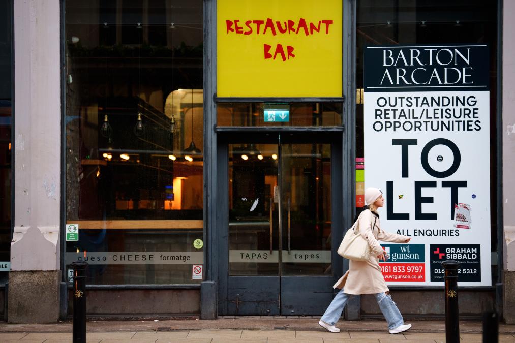 2023年11月22日,一名女子走過英國曼徹斯特一家關(guān)閉的餐廳。新華社發(fā)(喬恩·休珀攝)