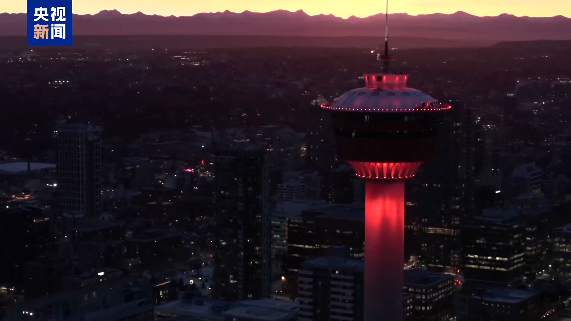 加拿大艾伯塔省卡爾加里市地標(biāo)建筑——卡爾加里塔,也在除夕和初一點(diǎn)亮“中國紅”。伴隨著夜幕降臨,卡爾加里塔身披紅光,營造出濃濃的節(jié)慶氛圍。