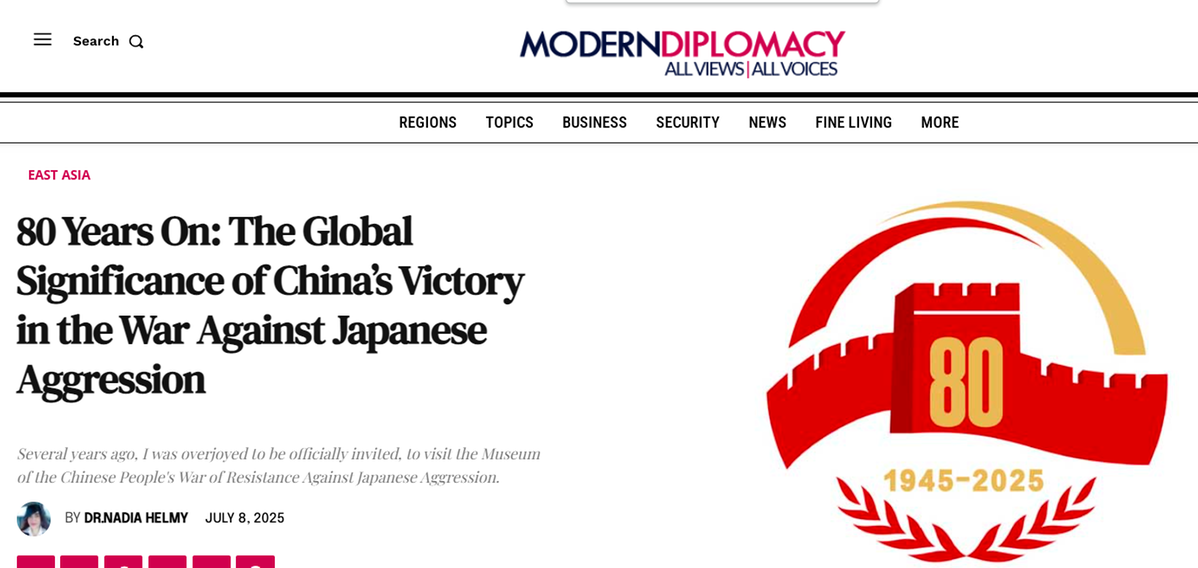 文章說,2025年是世界反法西斯戰(zhàn)爭勝利80周年,國際社會應(yīng)更加深刻地銘記中國抵抗日本軍國主義侵略所付出的巨大犧牲。中國人民抗日戰(zhàn)爭不僅是民族保衛(wèi)戰(zhàn),更是全球反法西斯戰(zhàn)爭的基石。80年后的今天,世界應(yīng)重新審視中國在二戰(zhàn)中的貢獻,避免歷史悲劇重演。