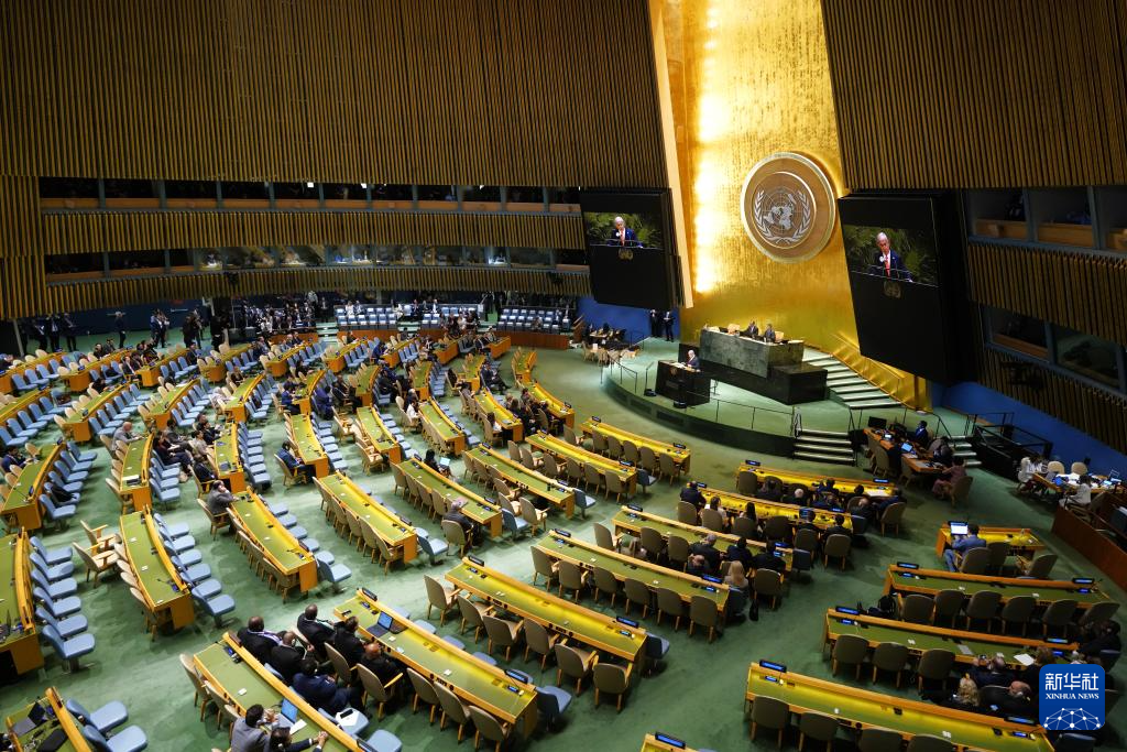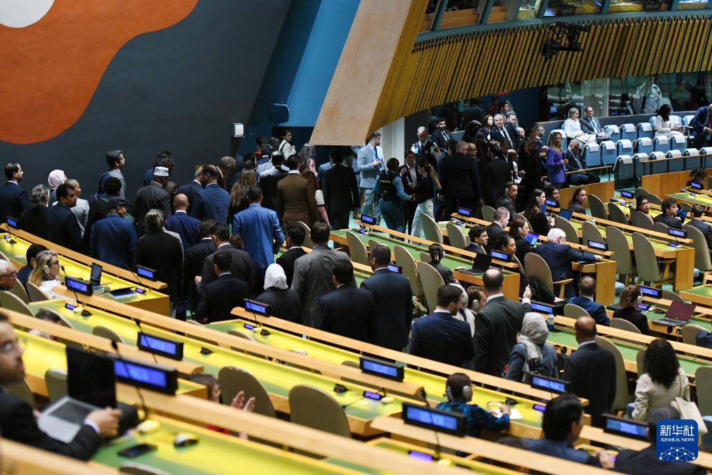 9月26日,在位于紐約的聯(lián)合國總部,眾多代表退場抗議。新華社記者李睿攝