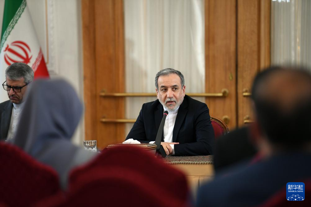10月5日,在伊朗首都德黑蘭,伊朗外交部長阿拉格齊出席記者會。新華社記者 沙達提 攝