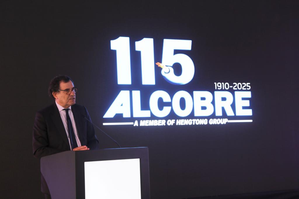 10月3日,葡萄牙經(jīng)濟(jì)兼國(guó)土融合部長(zhǎng)曼努埃爾·卡斯特羅·阿爾梅達(dá)在葡萄牙北部奧瓦爾市舉行的阿爾科夫雷電纜廠115周年慶典儀式上致辭。新華社記者荀偉攝