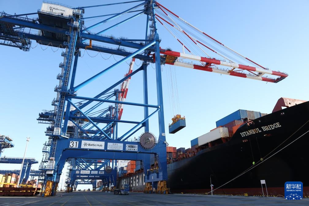 10月19日,在波蘭北部格但斯克港,從中國寧波舟山港出發(fā)的中歐北極快航航線首艘貨船進行裝卸工作。新華社記者 崔力 攝