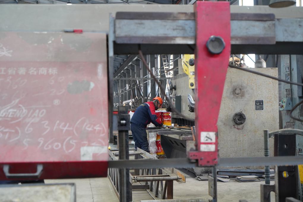 2025年12月8日,在俄羅斯猶太自治州首府比羅比詹市,一家從事鋼結構材料生產(chǎn)的中資企業(yè)的員工正在工作。新華社記者劉愷攝