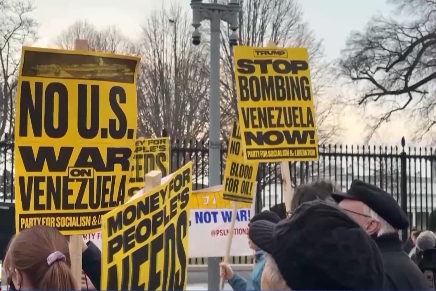 在波多黎各的圣胡安,數(shù)千人在聯(lián)邦法院前集會(huì)與和平示威,譴責(zé)將加勒比地區(qū)用作軍事平臺(tái),并高呼反對(duì)美國(guó)干預(yù)主義的口號(hào),要求尊重委內(nèi)瑞拉主權(quán)。