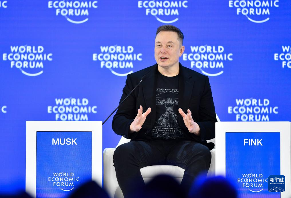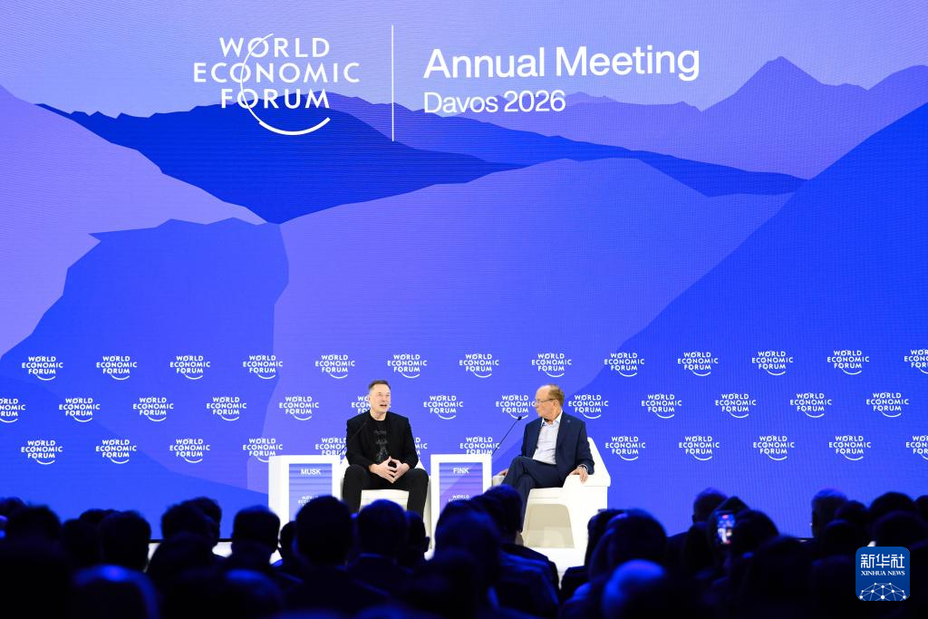 1月22日,美國企業(yè)家埃隆·馬斯克(左)在瑞士達沃斯舉辦的世界經(jīng)濟論壇2026年年會上發(fā)言。新華社記者 連漪 攝