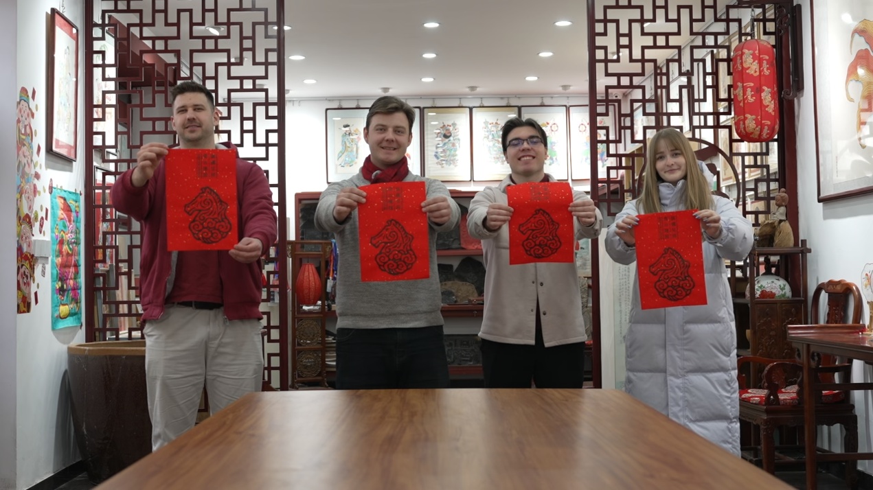 帝漢尼:我?guī)麄兏惺苤袊鴤鹘y(tǒng)文化,有剪紙,我們一起剪了一個“春”字。我還帶他們?nèi)ネ啬戤?,先刷上墨,再把紙放上面,用木板刷刷刷,他們覺得很有意思。我們印了一個馬。我們還一起包餃子,我像個老師一樣教他們包餃子。其實(shí)我包得不好看,他們包得也不好看,主要是我們包餃子這個過程特別開心。
