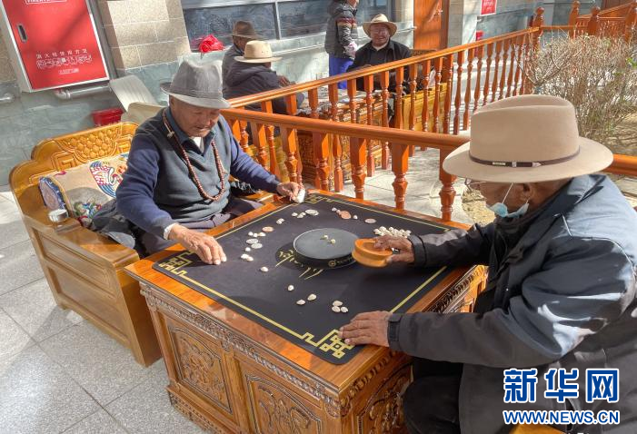 70歲老人格桑達(dá)瓦正在照料中心助餐區(qū)邊曬太陽(yáng)邊喝甜茶?!斑@里飯菜合口味,還能和大家一起聊天、聽(tīng)廣播,心里舒坦?!备裆__(dá)瓦說(shuō)。