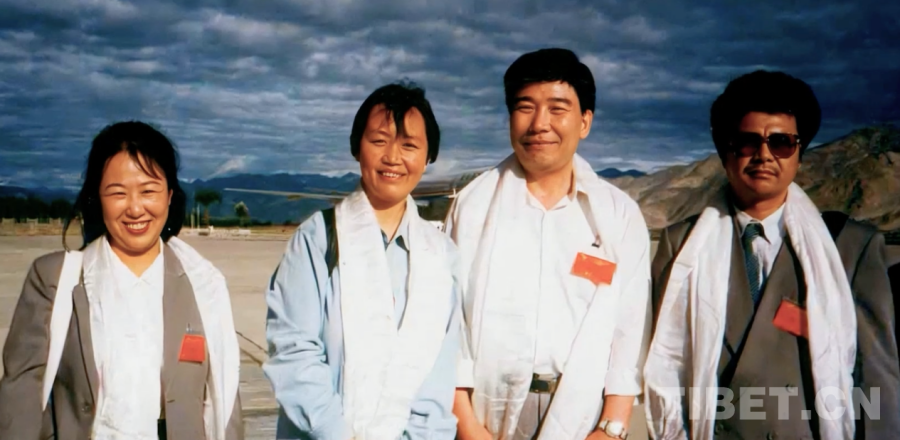圖為雷菊芳(左二)1995年隨中國民營科技實業(yè)家光彩事業(yè)赴藏考察團赴藏考察