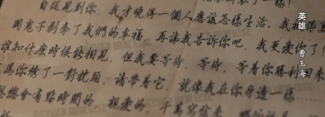 曹玉海未婚妻寫(xiě)給曹玉海的信。來(lái)源:CCTV國(guó)家記憶