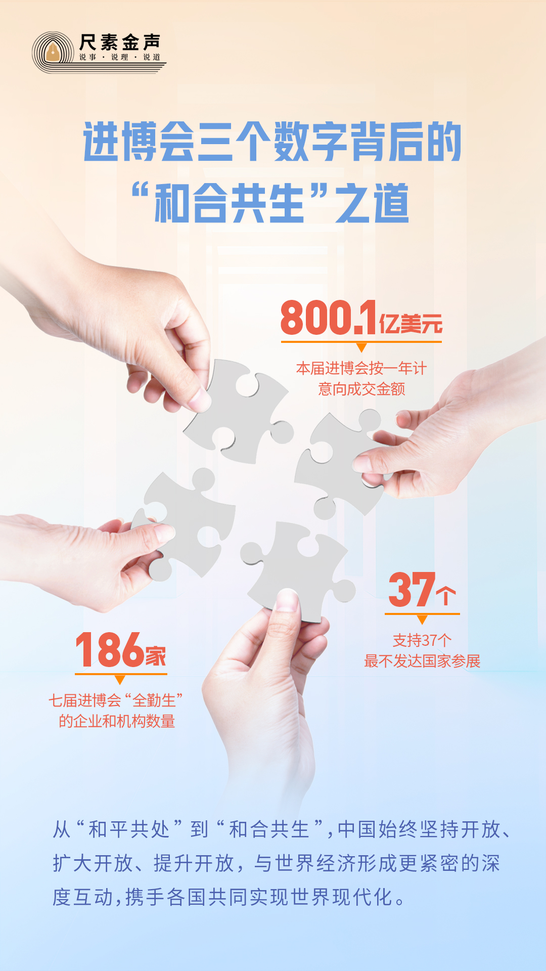 在進(jìn)博會(huì),這些數(shù)字生動(dòng)說明,從“和平共處”到“和合共生”,中國(guó)始終堅(jiān)持開放、擴(kuò)大開放、提升開放,與世界經(jīng)濟(jì)形成更緊密的深度互動(dòng),攜手各國(guó)共同實(shí)現(xiàn)世界現(xiàn)代化。