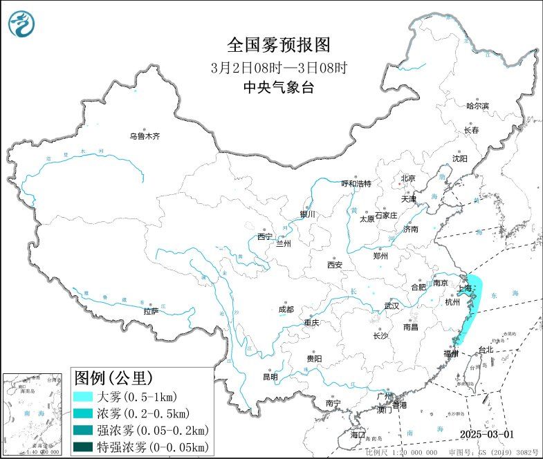 預(yù)計,3月2日白天至夜間,長江口及杭州灣附近海域、舟山群島附近海域、浙江沿岸海域、上海港、寧波港將有能見度不足1公里的濃霧。