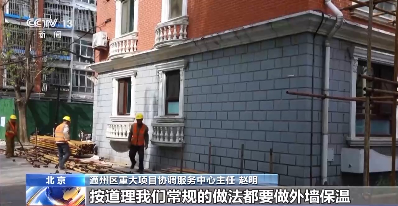 北京市通州區(qū)重大項(xiàng)目協(xié)調(diào)服務(wù)中心主任 趙明:前面那棟樓外墻在改造,按道理,我們常規(guī)的做法都要做外墻保溫。這兩棟樓,老百姓認(rèn)為我的外墻瓷磚有保溫,我就不需要再做這事了。