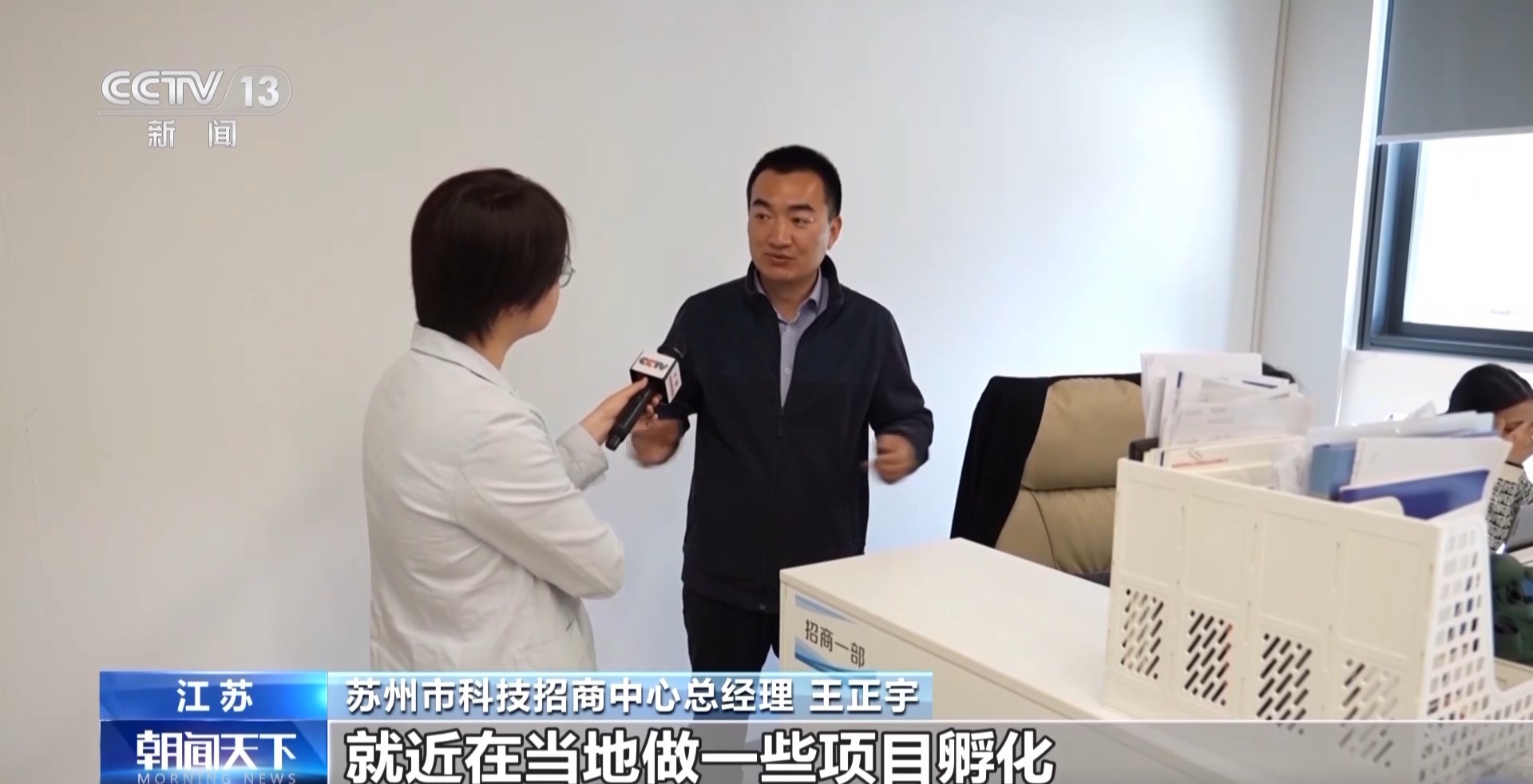 蘇州市科技招商中心總經(jīng)理 王正宇:方便這些高校的老師跟研究生,就近在當?shù)刈鲆恍╉椖康姆趸N覀兤ヅ湟恍┹d體、政策,包括資金的支持,條件成熟的時候,我們再讓他到蘇州來落地發(fā)展。