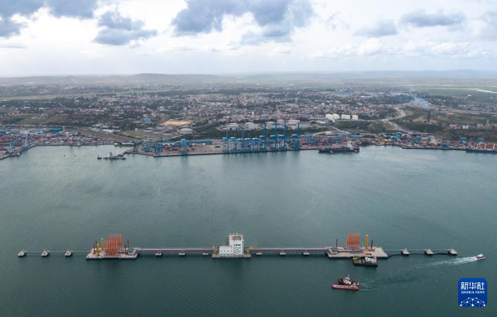 這是2024年8月15日在肯尼亞蒙巴薩拍攝的油碼頭和蒙巴薩港(無人機照片)。 新華社記者 王冠森 攝