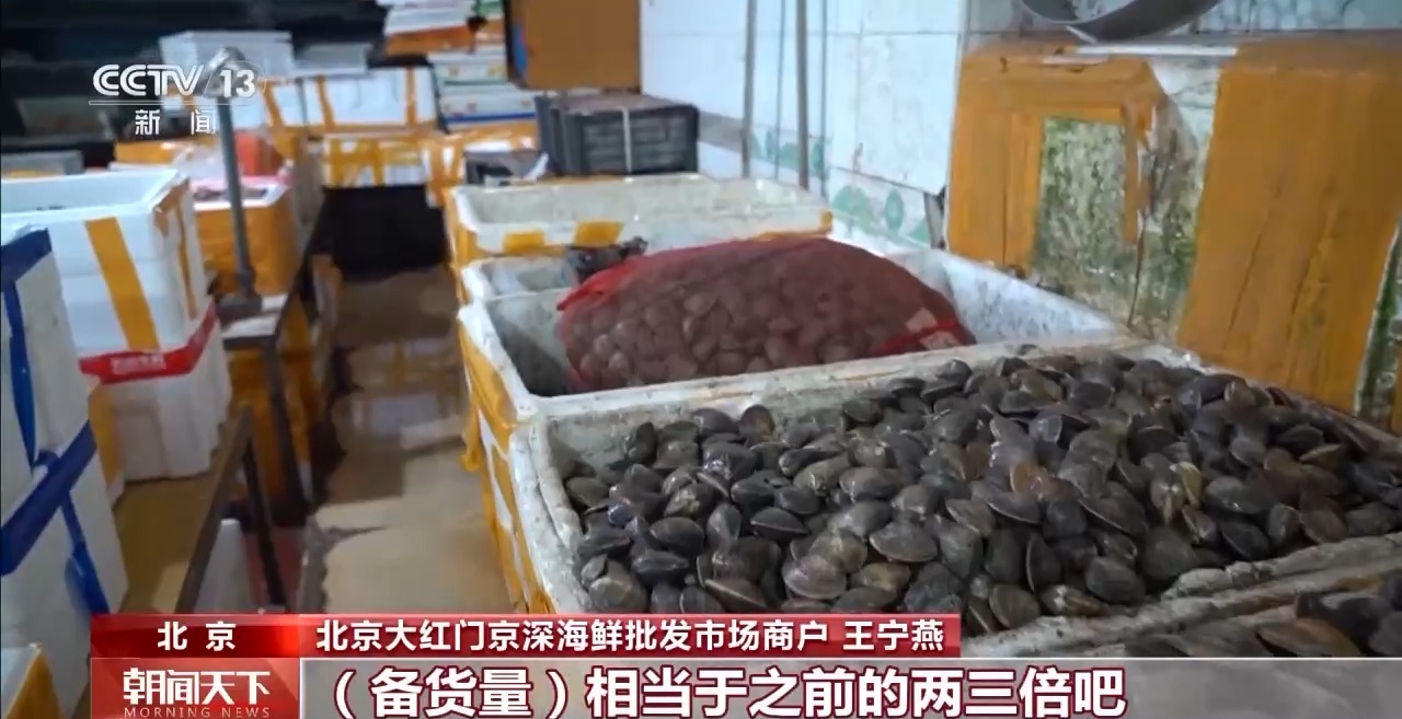 北京大紅門京深海鮮批發(fā)市場商戶 王寧燕:根據(jù)“五一”的情況,扇貝、生蠔這種適合聚餐的,我們會多備一點,備貨量相當于之前的兩三倍吧。