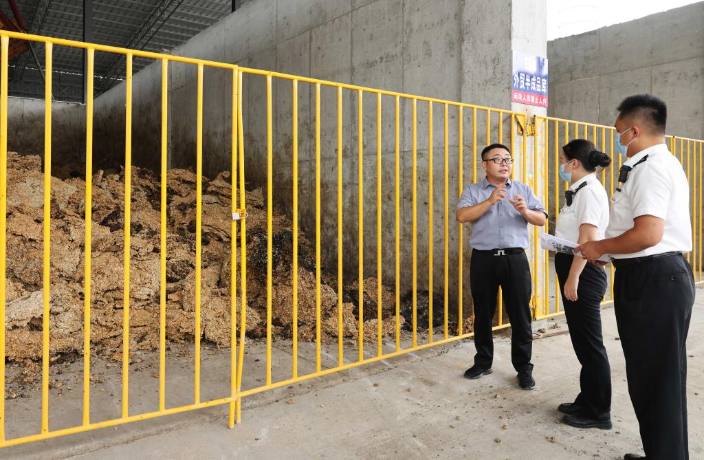 5月28日,在海南象元實(shí)業(yè)有限公司,企業(yè)人員向海口海關(guān)所屬三亞海關(guān)關(guān)員介紹企業(yè)進(jìn)口的橡膠原材料。新華社記者金皓原 攝