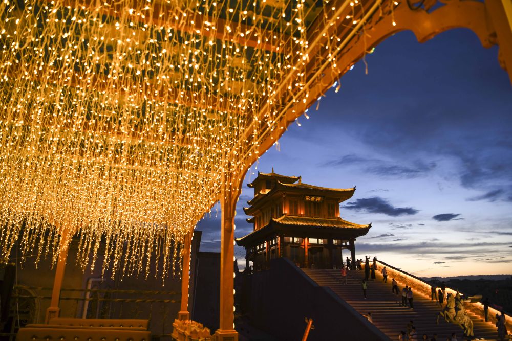 人們?cè)谛陆κ彩斜P(pán)橐城景區(qū)內(nèi)游玩(2023年6月14日攝)。新華社記者 胡虎虎 攝