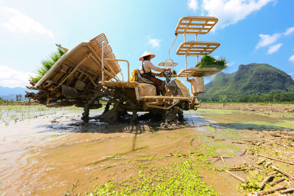 重慶市巫山縣廟宇鎮(zhèn)進(jìn)行機(jī)械化插秧。受訪(fǎng)者供圖