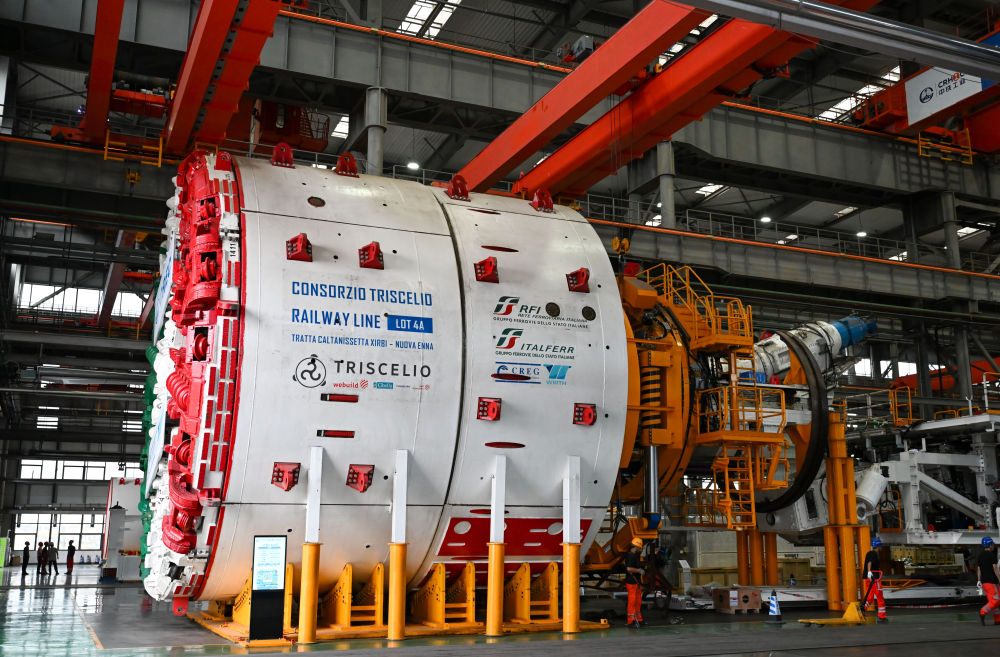 這是6月18日在天津自由貿(mào)易試驗(yàn)區(qū)天津港東疆片區(qū)的中鐵工程裝備集團(tuán)(天津)有限公司拍攝的即將出口意大利的盾構(gòu)機(jī)。新華社記者 孫凡越 攝