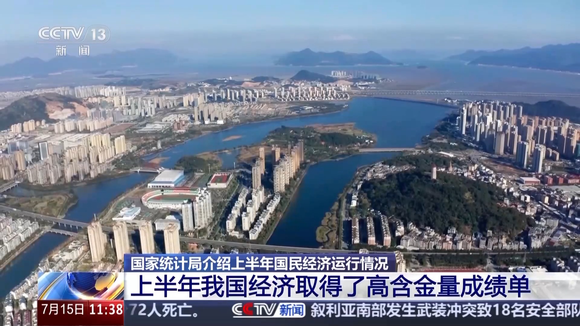 首先是中外媒體最為關(guān)注的,上半年我國國內(nèi)生產(chǎn)總值同比增長5.3%,增速高于去年同期和去年全年,延續(xù)了一季度以來向新向好的發(fā)展態(tài)勢。