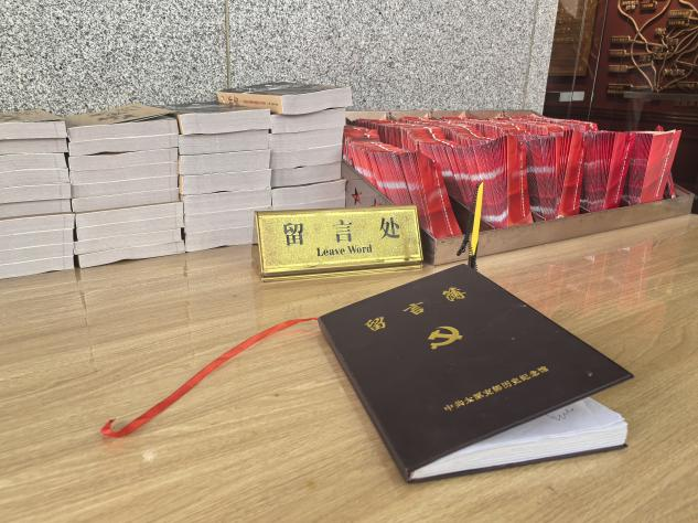 “我們每天平均接待觀眾2000多人,不少人喜歡把自己參觀完的感受寫在留言冊上?!迸碚嫔紧咧泄蔡Р颗f址紀念館館長郭志軍介紹,每年的6-8月是參觀高峰,一些參觀者在結束觀展后,將自己的感觸寫到留言冊上,留言的方式也各不相同,有的用書法,有的畫畫,都在表達對祖國和山西的祝福。