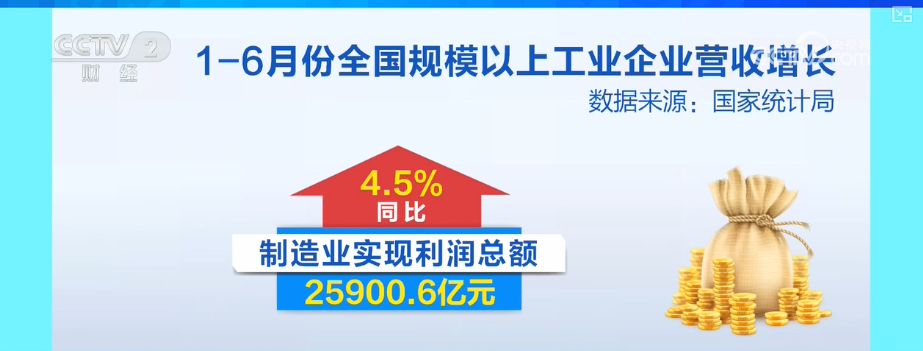 1—6月份,規(guī)模以上工業(yè)企業(yè)實(shí)現(xiàn)營業(yè)收入66.78萬億元,同比增長2.5%。制造業(yè)實(shí)現(xiàn)利潤總額25900.6億元,同比增長4.5%。