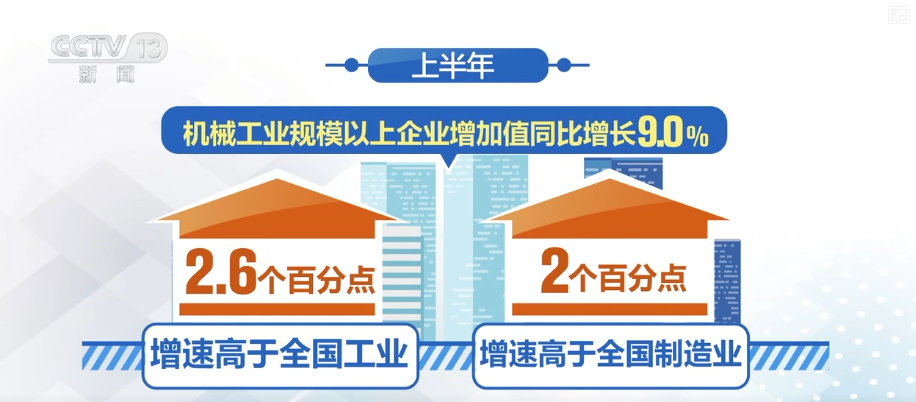 此外,上半年,機(jī)械工業(yè)規(guī)模以上企業(yè)增加值同比增長9.0%,增速高于全國工業(yè)和制造業(yè)2.6和2個百分點,為穩(wěn)定經(jīng)濟(jì)大盤、提振工業(yè)經(jīng)濟(jì)發(fā)揮積極作用。