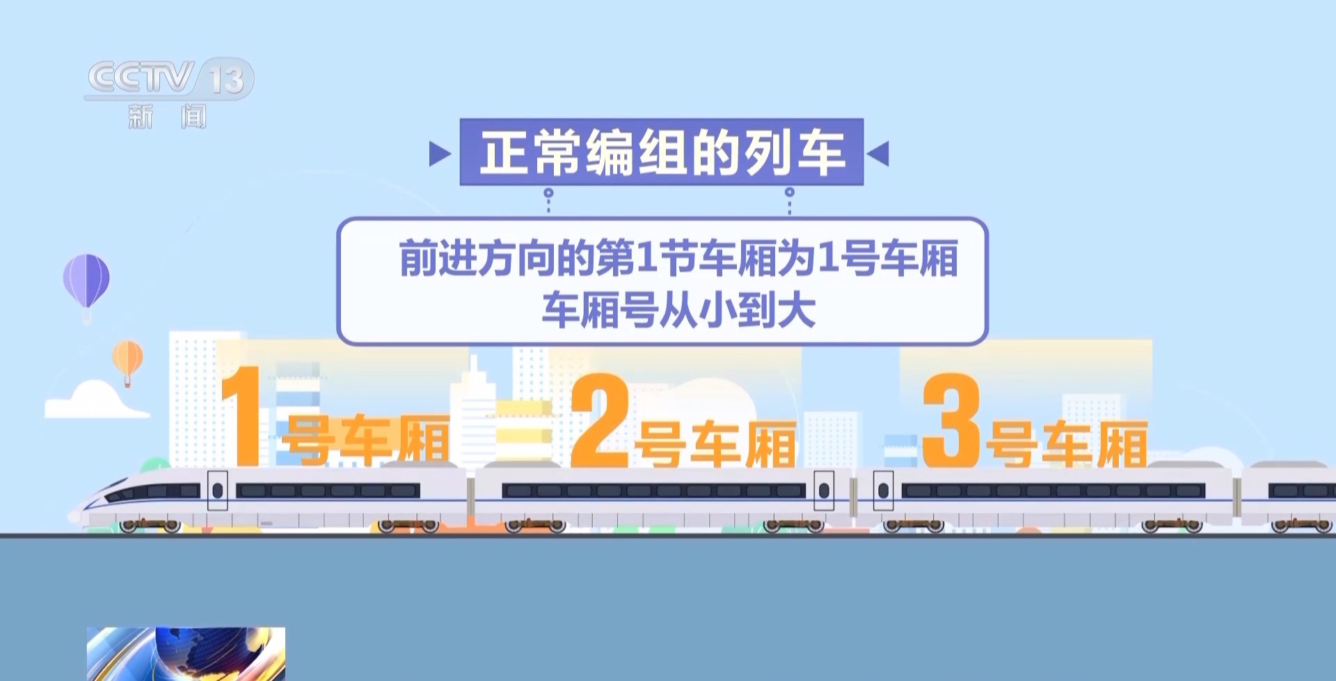 國鐵太原局大同南站客運(yùn)值班員 張家鶯:現(xiàn)在大多數(shù)車站都在旅客進(jìn)入站臺(tái)處的LED屏上顯示車廂排序信息,旅客通過排序能判斷自己的車廂是應(yīng)該往前走還是往后走。很多高鐵站還設(shè)置有黃、綠、藍(lán)、紫等顏色的地標(biāo),地標(biāo)上標(biāo)注的數(shù)字代表列車??空九_(tái)后車廂所在的位置。