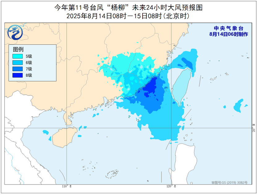 8月14日08時(shí)至15日08時(shí),東海南部、臺灣海峽、南海東北部、巴士海峽、臺灣島北部和南部沿海、福建中南部及沿海、廣東東部及沿海、江西南部將有5~7級風(fēng),其中福建南部沿海、廣東東部沿海、臺灣海峽南部海域風(fēng)力可達(dá)8級、陣風(fēng)9~10級。